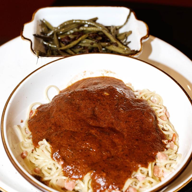 Our take on the famous Filipino comfort food: a hearty portion of Pancit noodles smothered in our bold, sweet Filipino Marinara sauce with your choice of protein topper, and finished with a shower of feta cheese. A taste of tradition and celebration in every bite, served with just a drink.