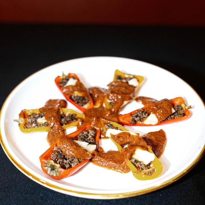 Vibrant baby bell peppers stuffed with our signature Lumpia filling and topped with cheese, then baked until the peppers are tender and juicy. A perfect East-meets-West bite.